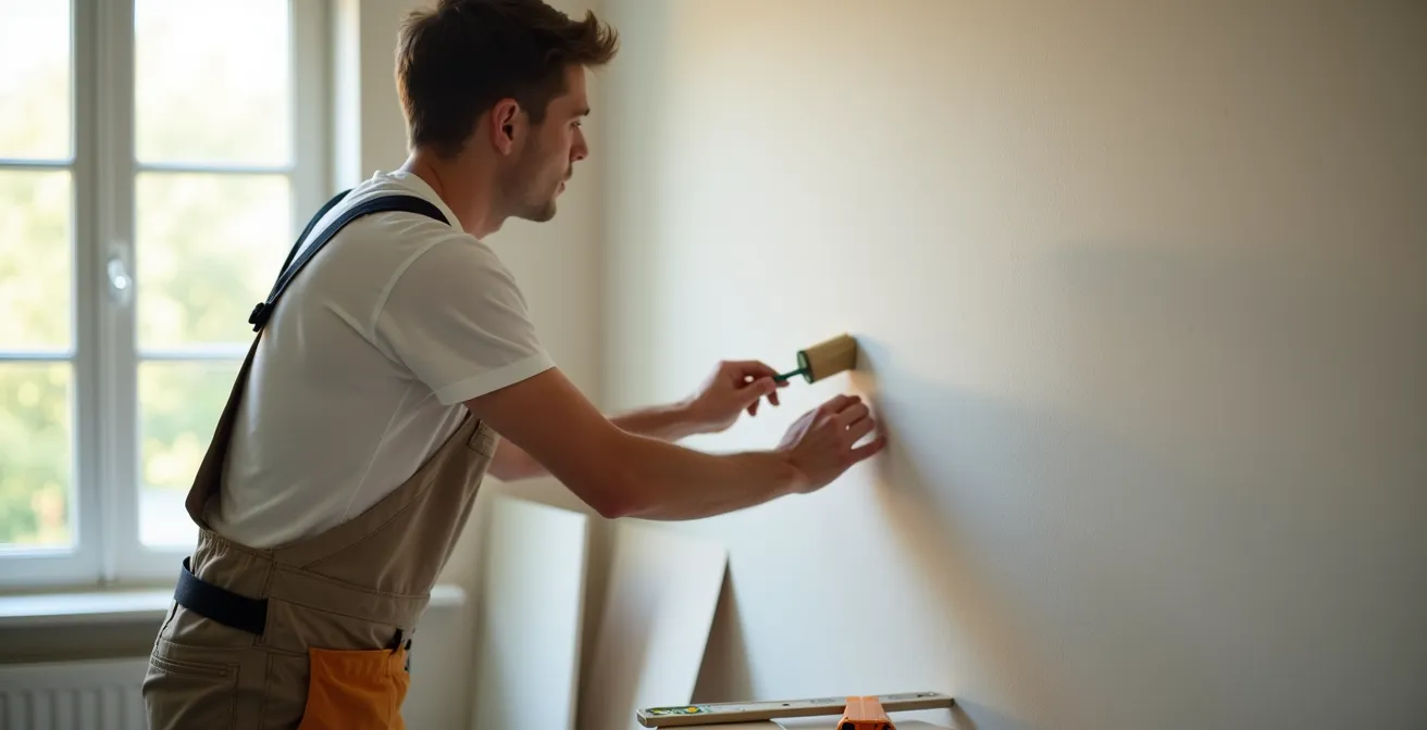 Du hast eine wunderschöne, helle Vliestapete ausgesucht, doch nach dem Trocknen schimmert ein dunkler Fleck von der alten Wand durch – ein Albtraum! Dieses Problem hat meist zwei Ursachen: einen ungleichmäßigen Untergrund und eine zu geringe Grammatur (Dicke) der Tapete. Vliestapeten sind, besonders in hellen Farben, oft leicht transluzent. Alte Farbreste, Spachtelflecken oder Gipskartonplatten mit unterschiedlichen Farben können sichtbar bleiben.
