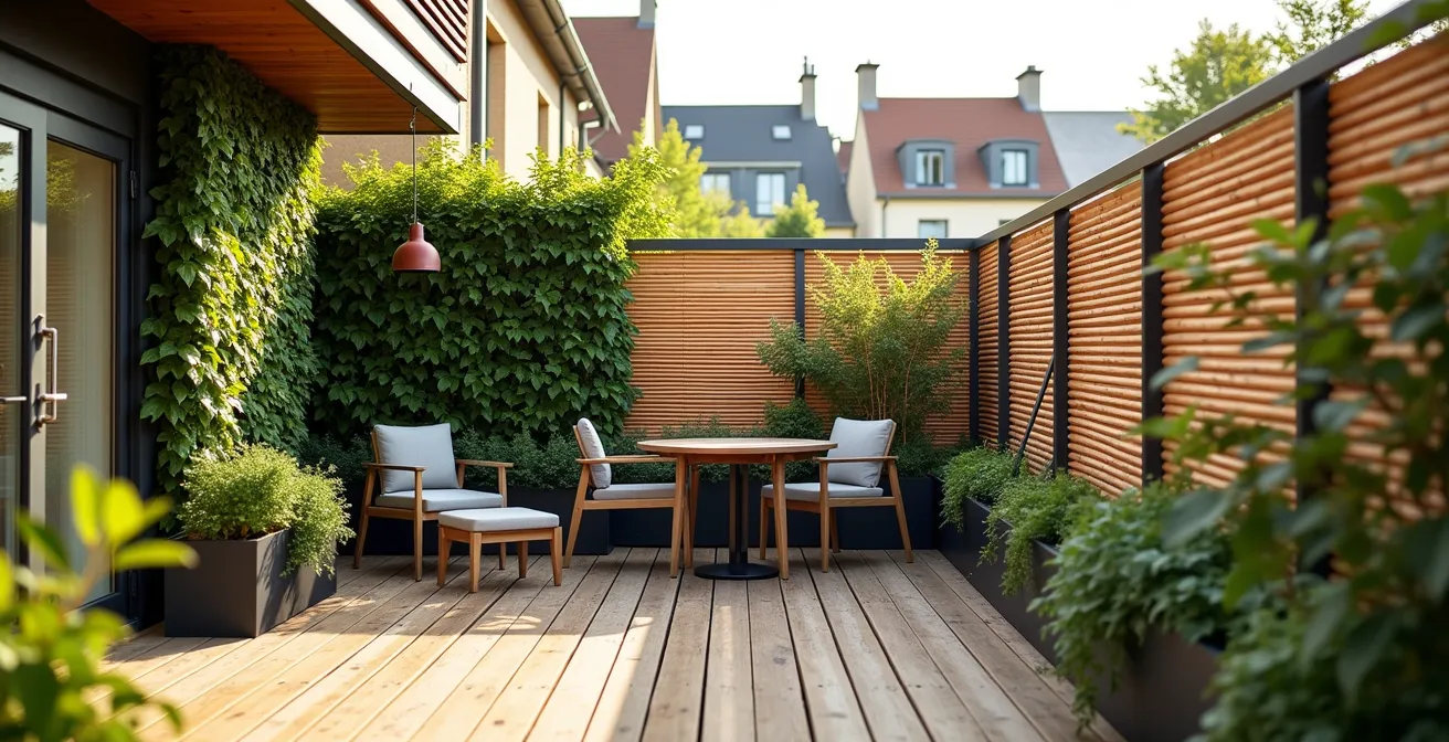 Ein effektiver Sichtschutz auf der Reihenhaus-Terrasse muss den Raum nicht verkleinern – im Gegenteil: Durch intelligente Planung wird Privatsphäre zu einem Element, das Weite schafft.