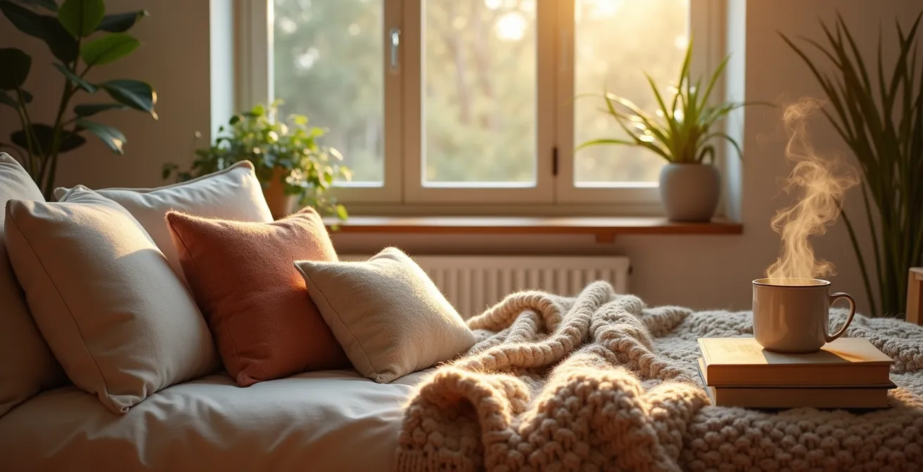 Die gängigen Ratschläge – aufräumen, eine Duftkerze anzünden, Pflanzen aufstellen – sind gut gemeint, kratzen aber nur an der Oberfläche. Sie behandeln das Symptom, nicht die Ursache: ein überreiztes Nervensystem, das im permanenten „Kampf-oder-Flucht“-Modus gefangen ist. Was wäre, wenn der wahre Schlüssel zur Erholung nicht darin liegt, Ihr Zuhause nur schöner zu machen, sondern es in ein aktives Werkzeug zur Regulation Ihres Nervensystems zu verwandeln? Wenn jede Textur, jede Lichtquelle und jedes kleine Ritual bewusst darauf ausgerichtet wäre, das Stresshormon Kortisol zu senken und den entspannenden Teil Ihres Nervensystems, den Parasympathikus, zu aktivieren?